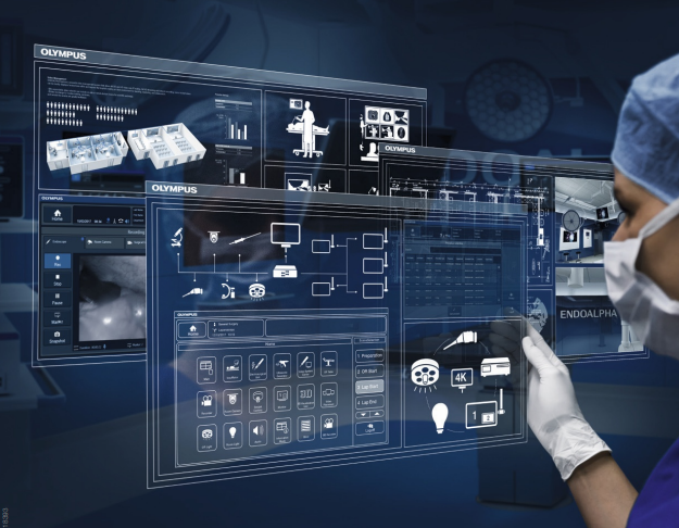 ENDOALPHA’s medical control allows centralized control of medical equipment produced by Olympus and other leading manufacturers, including endoscopic equipment, surgical lamps, video management equipment, room lights, and tables, from sterile and/or non-sterile touch screens. Settings for equipment can be easily stored and recovered for each stage of the procedure.